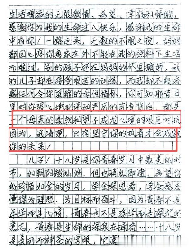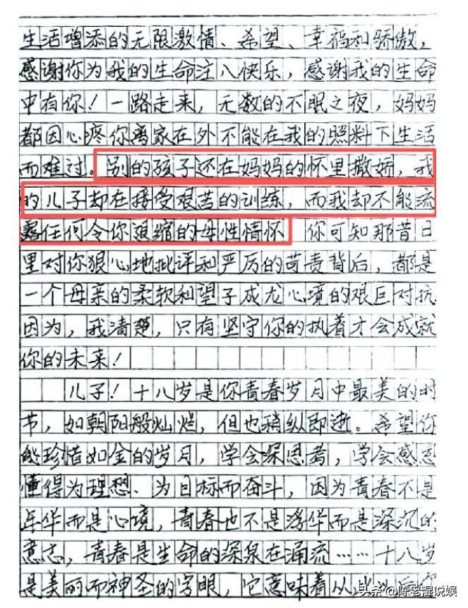 更没人想到,支撑他熬过所有低谷、顶住所有质疑的力量,竟来自母亲在他18岁时写下的一封家书。