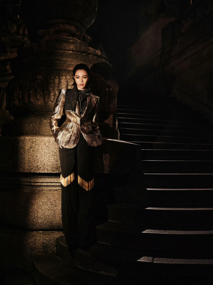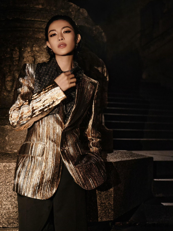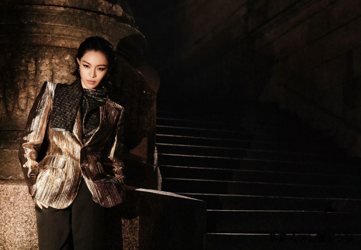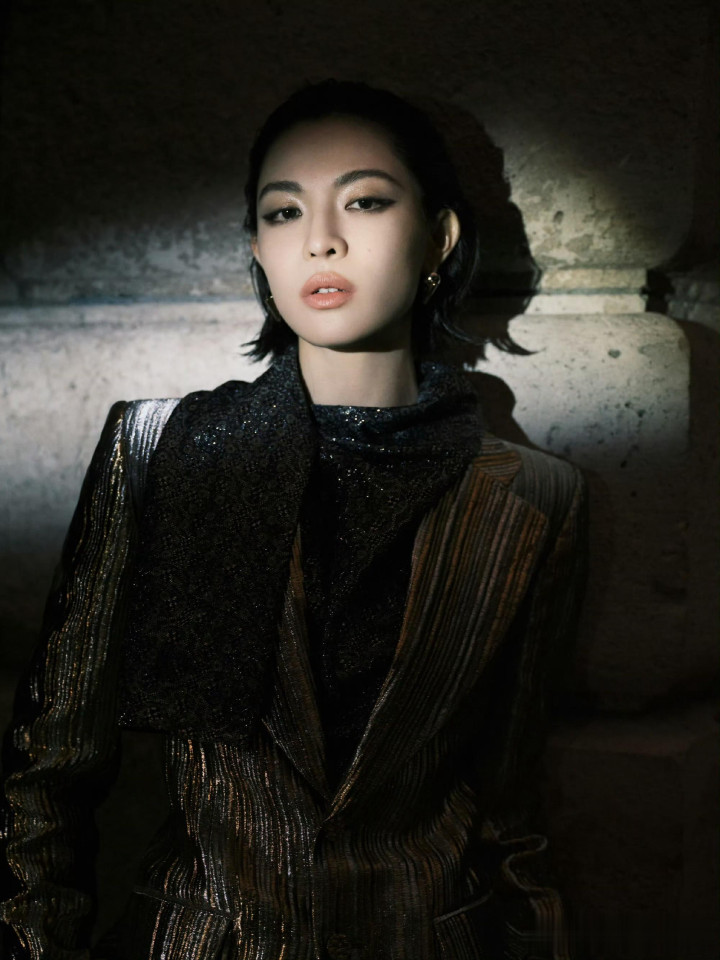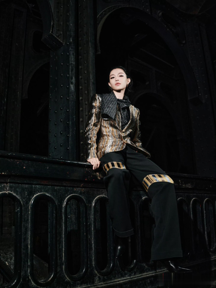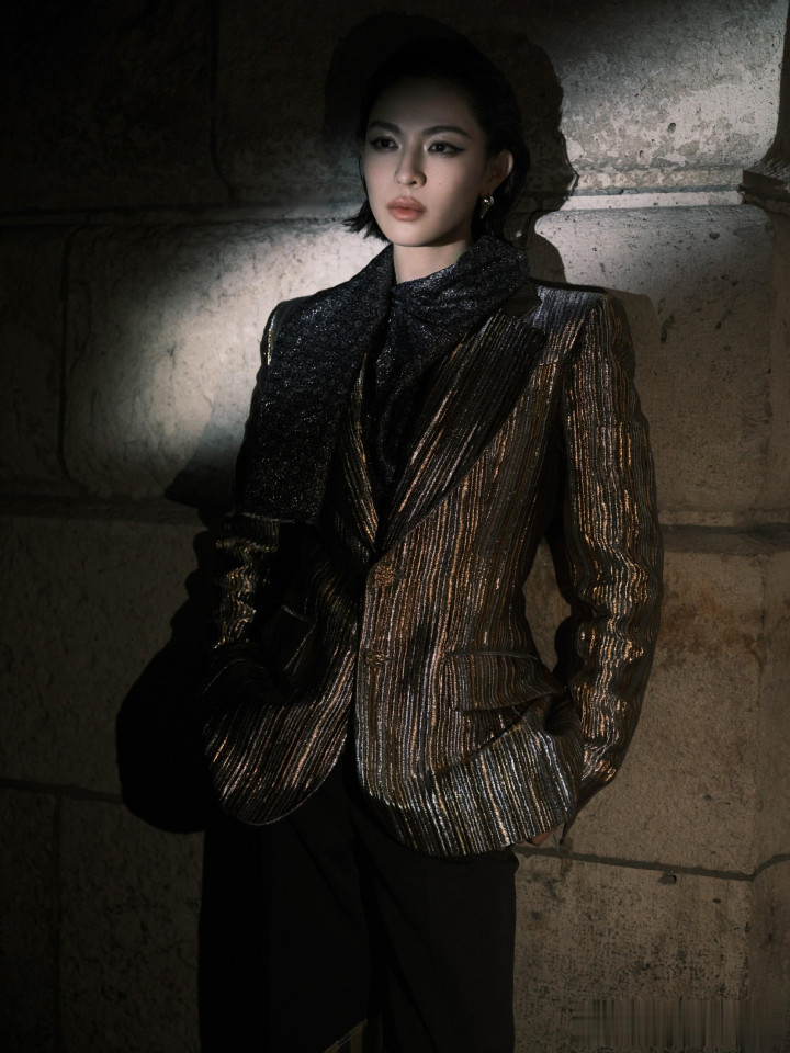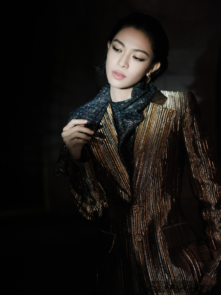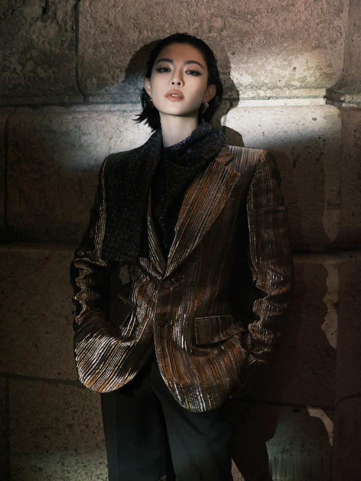 > > 钟楚曦LV大秀金丝西装湿短发吸睛